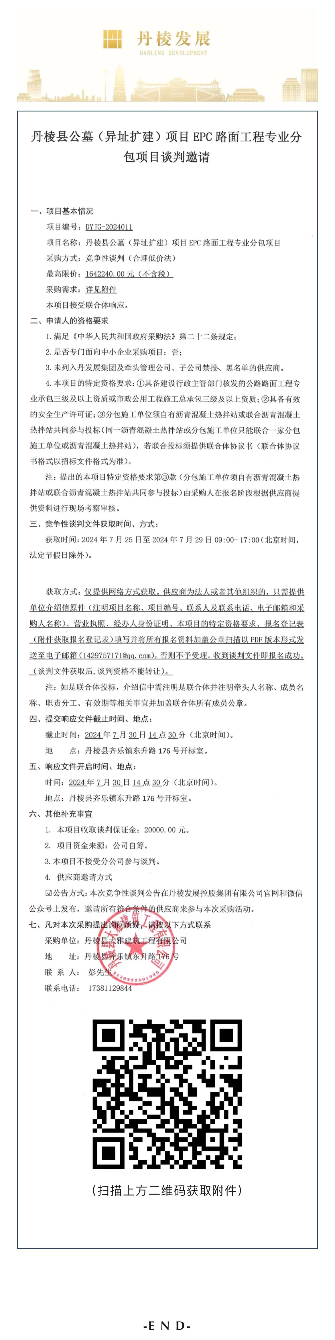 丹棱縣公墓(異址擴(kuò)建)項(xiàng)目EPC路面工程專業(yè)分包項(xiàng)目競爭性談判邀請公告