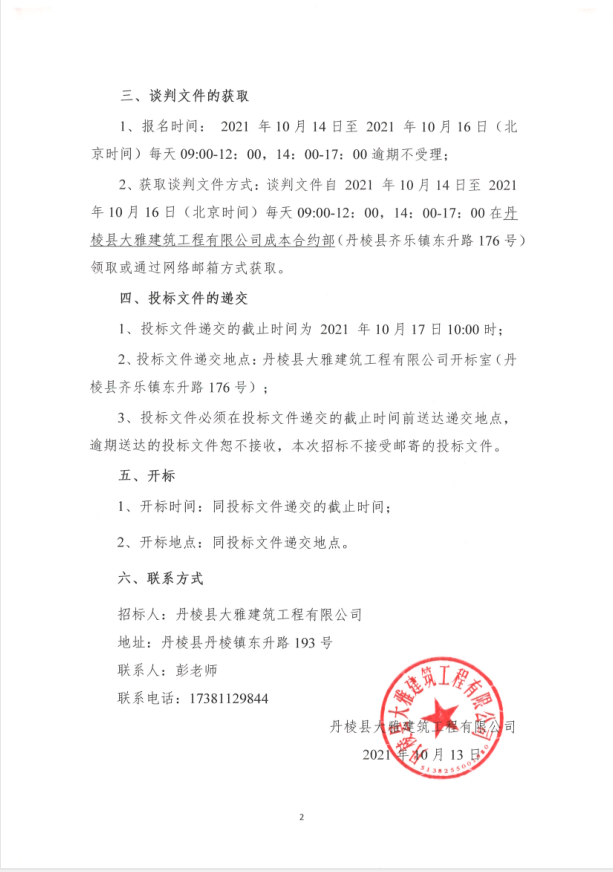 【大雅建筑公司】丹棱縣沿河慢行系統(tǒng)橋體下穿人行道排洪排澇改造工程(一標(biāo)段)專業(yè)分包競(jìng)爭(zhēng)性談判公告