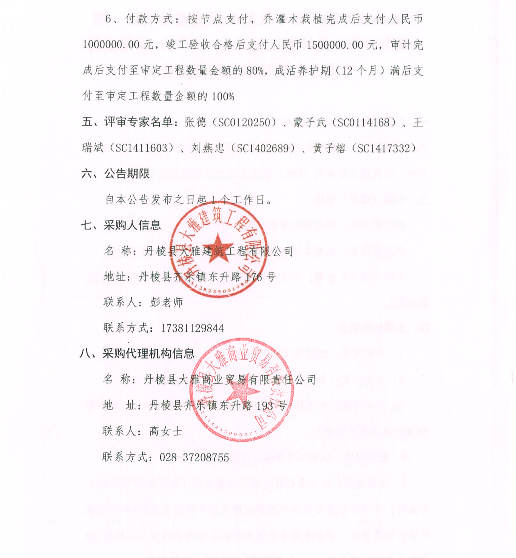 丹棱縣熊河碥片區(qū)市政基礎設施建設項目一期(城市雙修)設計施工總承包(EPC)綠化工程 專業(yè)分包項目成交結果公告