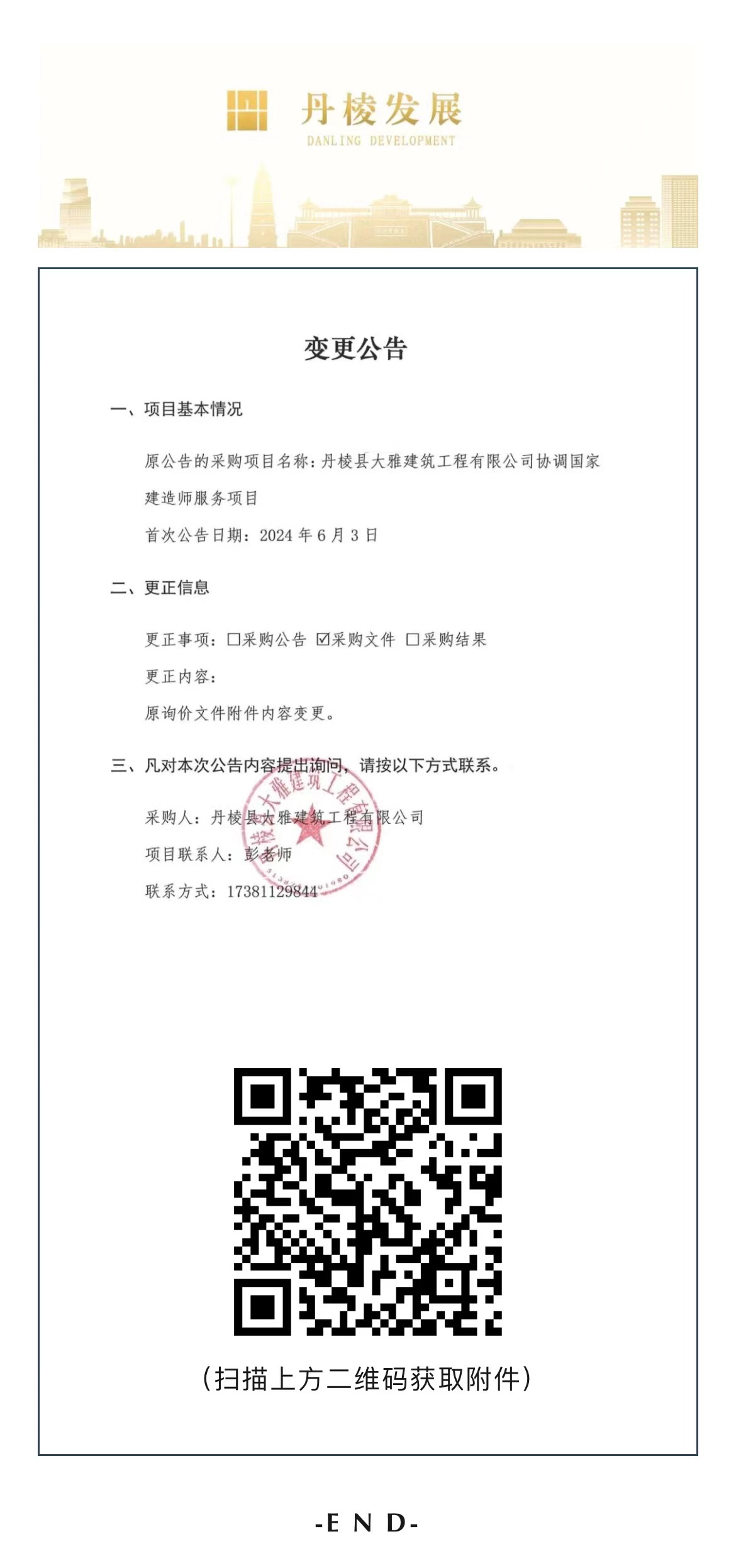 丹棱縣大雅建筑工程有限公司協調國家建造師服務項目變更公告