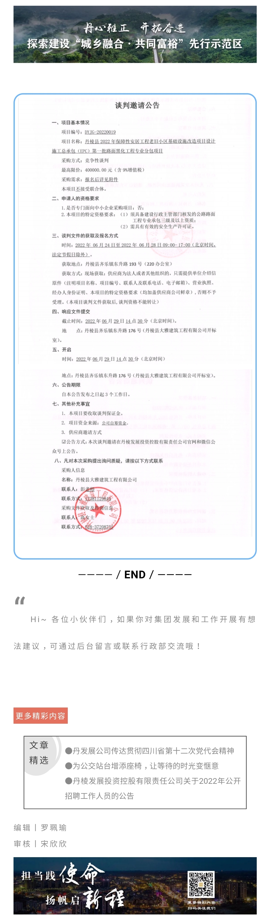 丹棱縣2022年保障性安居工程老舊小區(qū)基礎(chǔ)設(shè)施改造項(xiàng)目設(shè)計(jì)施工總承包(EPC)第一批路面黑化工程專業(yè)分包項(xiàng)目談判邀請公告