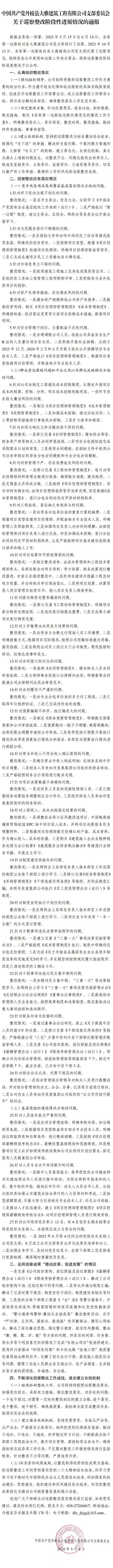 中國共產(chǎn)黨丹棱縣大雅建筑工程有限公司支部委員會關(guān)于巡察整改階段性進(jìn)展情況的通報