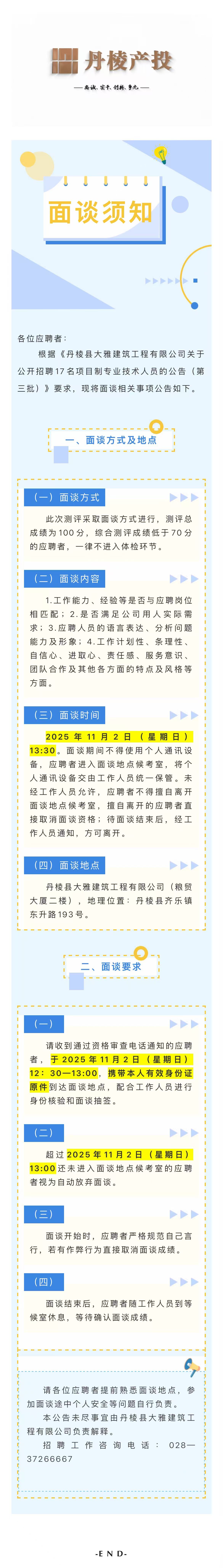 丹棱縣大雅建筑工程有限公司關(guān)于公開招聘17名項(xiàng)目制專業(yè)技術(shù)人員的面談須知(第三批)
