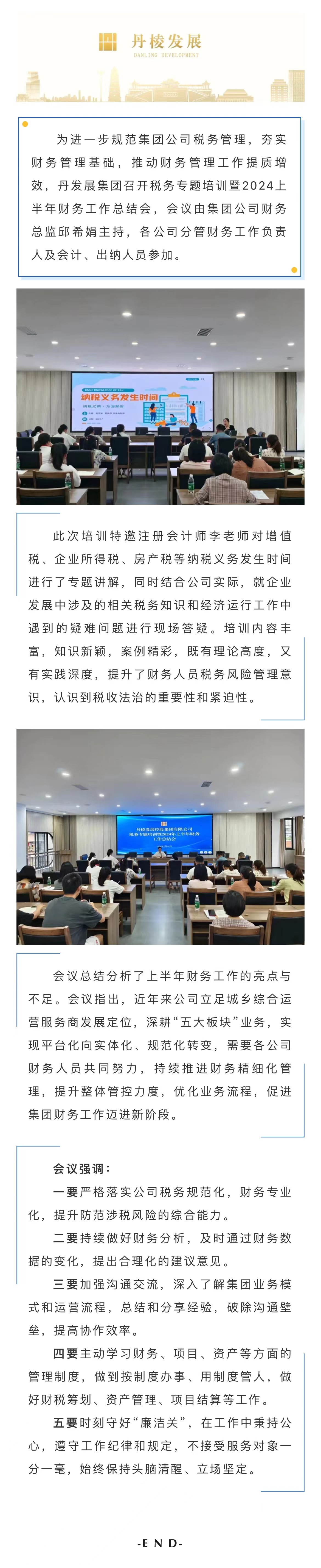 審慎嚴(yán)謹(jǐn) 聚力同行——丹發(fā)展集團(tuán)公司召開稅務(wù)專題培訓(xùn)暨2024上半年財(cái)務(wù)工作總結(jié)會(huì)
