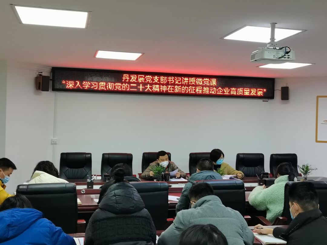 按照縣委《關于認真學習宣傳貫徹黨的二十大精神的通知》相關要求,12月16日,丹發(fā)展黨支部召開黨員(擴大)會議,由支部書記講黨課,學習貫徹黨的二十大精神。丹發(fā)展公司全體黨員及員工參加。